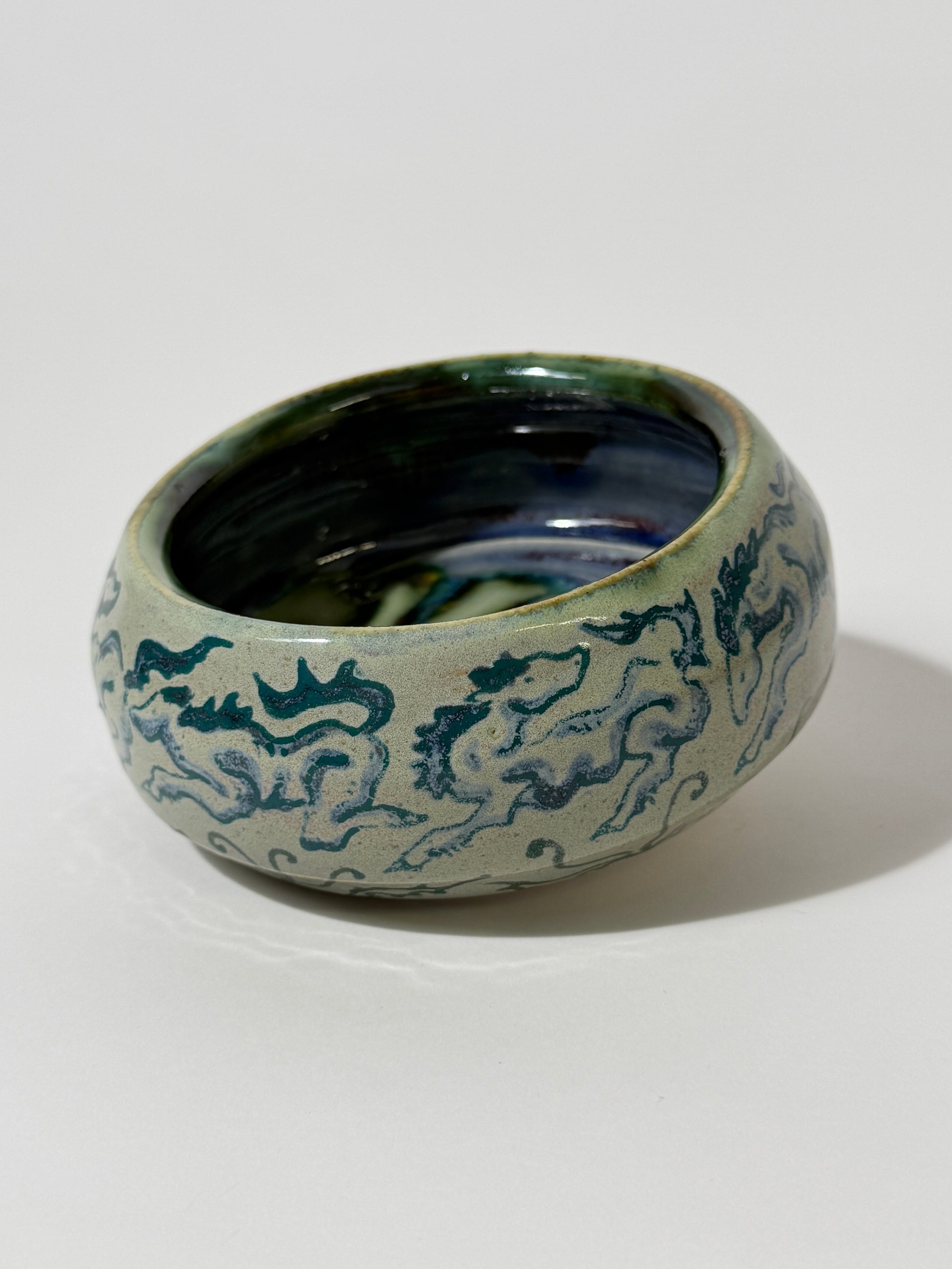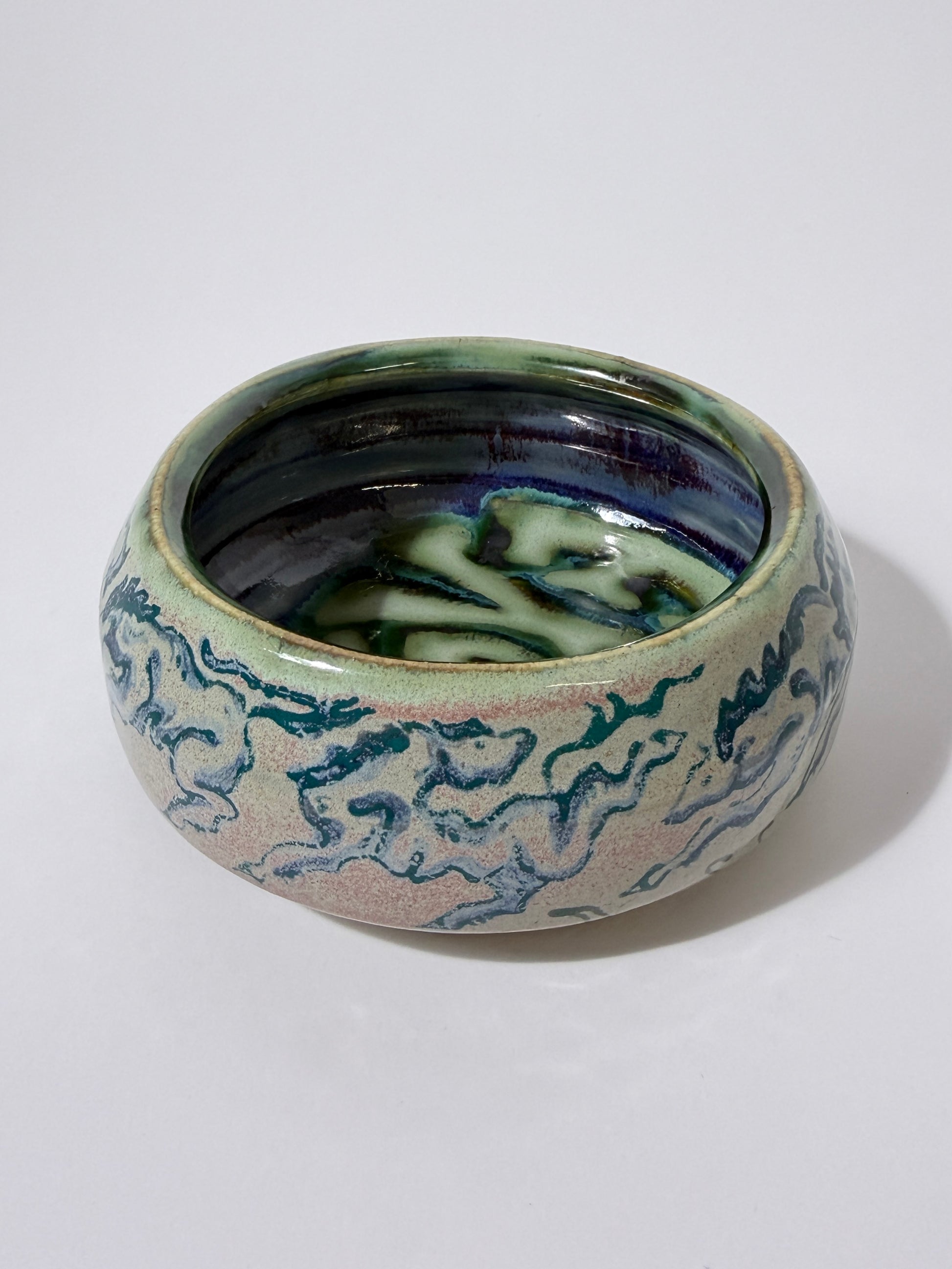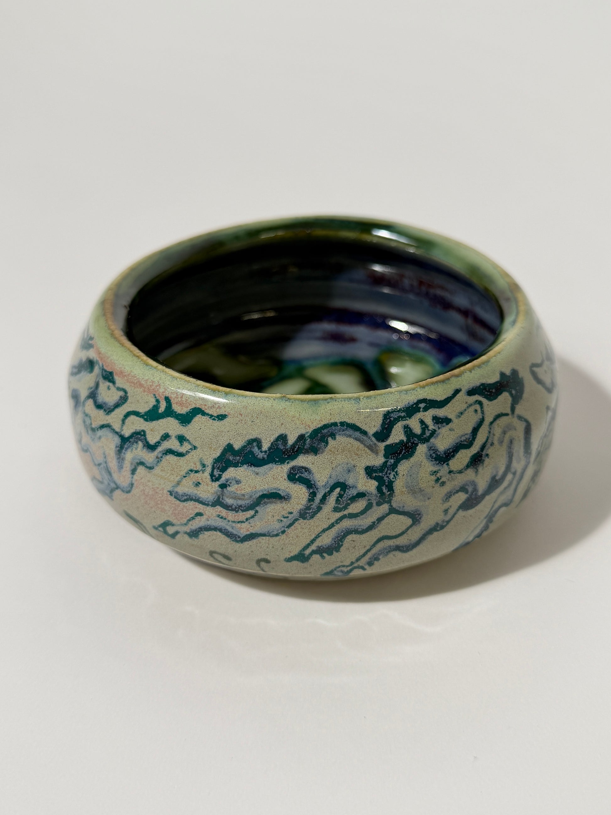 Hand thrown, painted, and glazed stoneware catch-all tray. Hand wash with care. Not recommended for use with food.