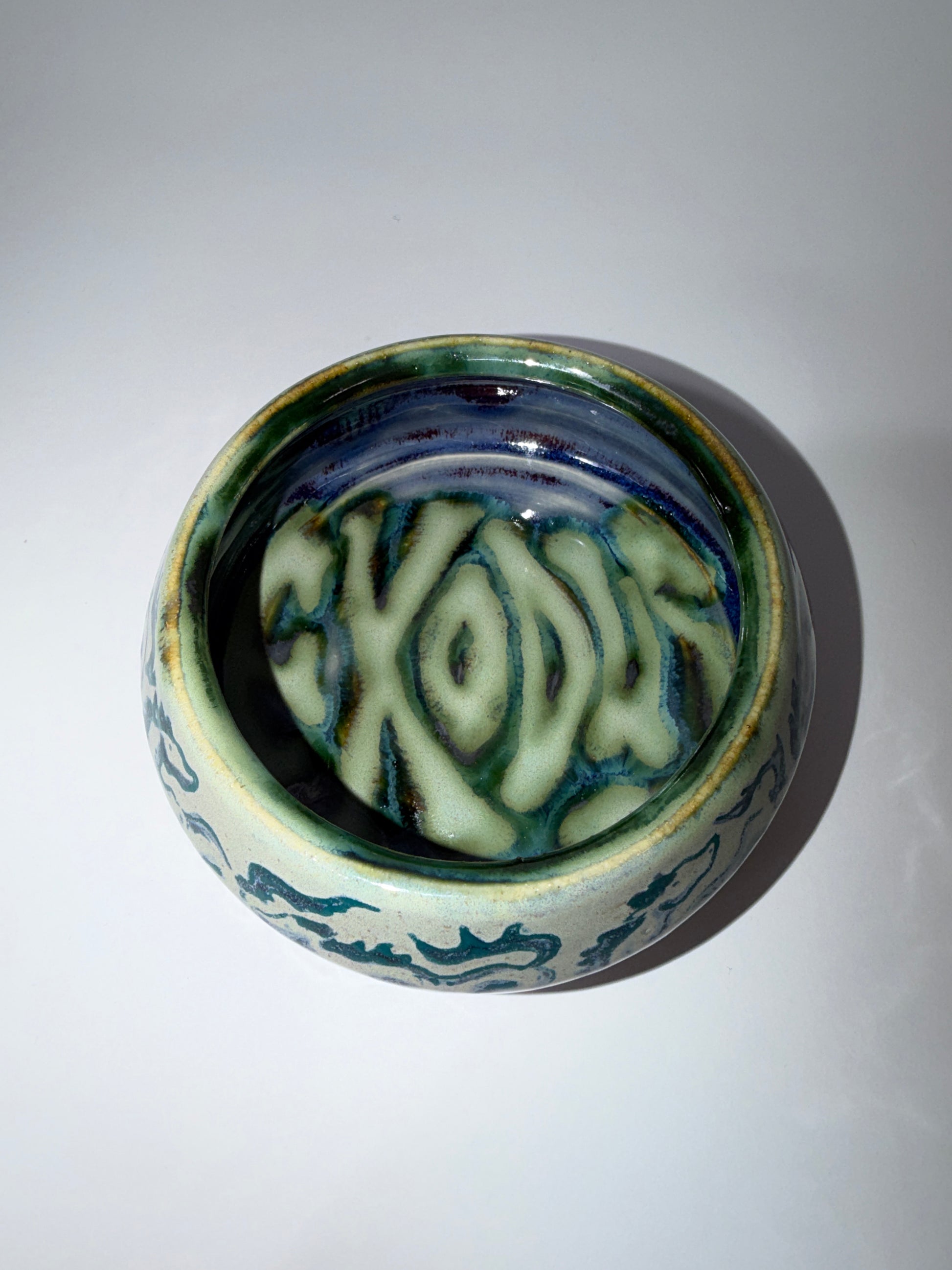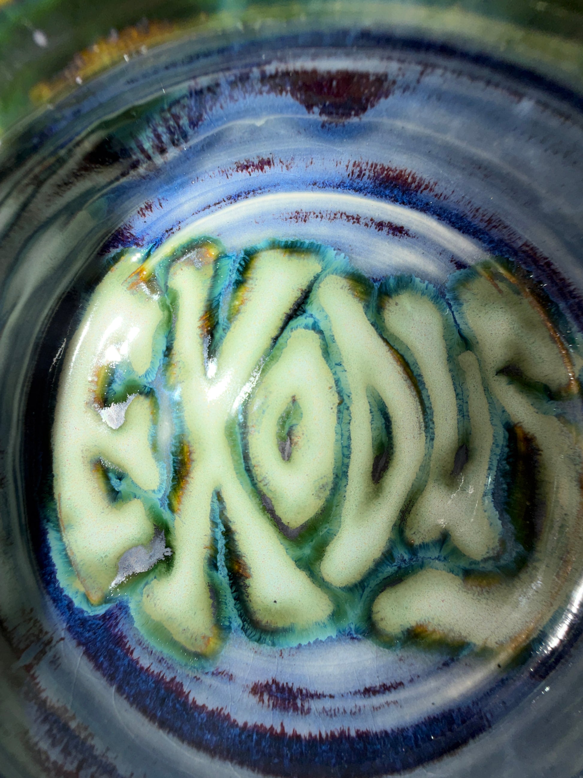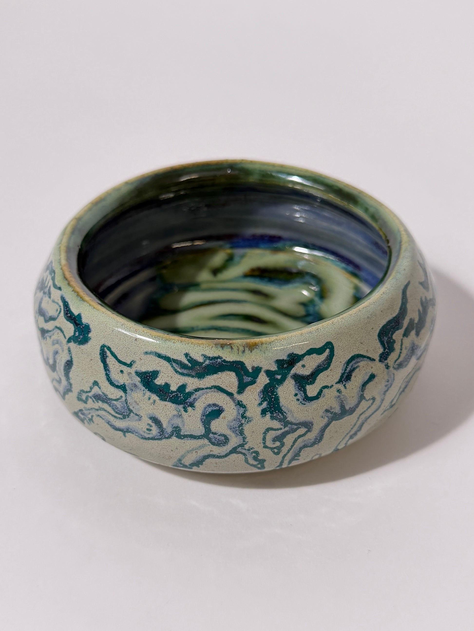 Hand thrown, painted, and glazed stoneware catch-all tray. Hand wash with care. Not recommended for use with food.