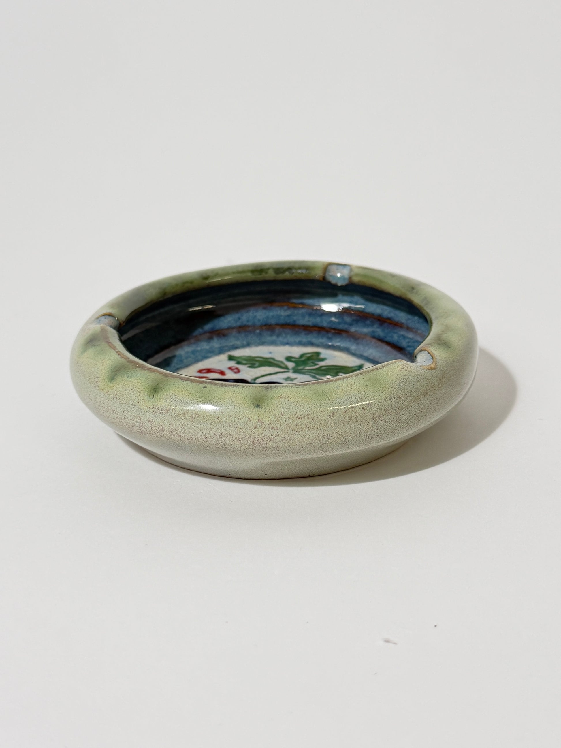 Hand thrown, painted, and glazed stoneware ashtray. Hand wash with care.