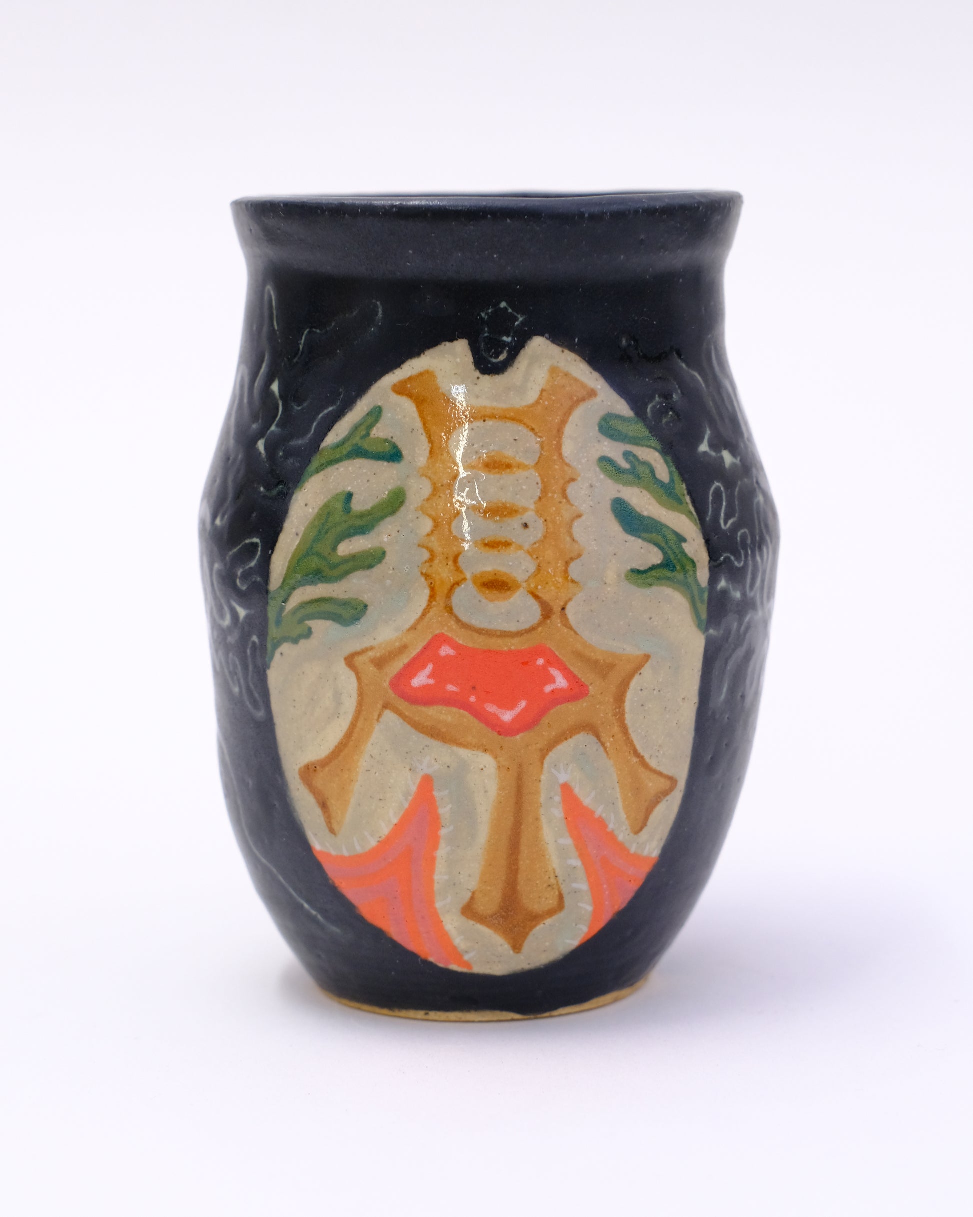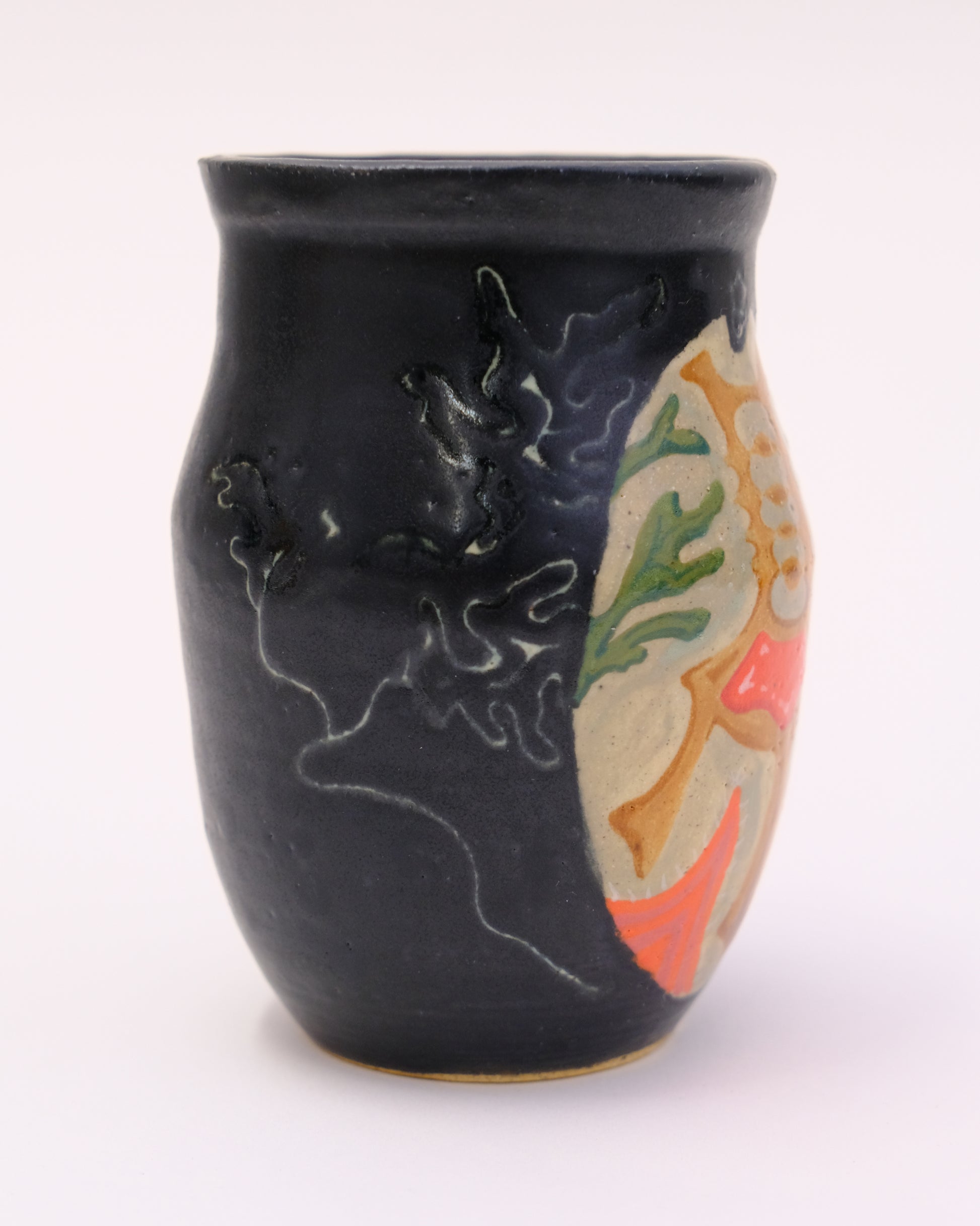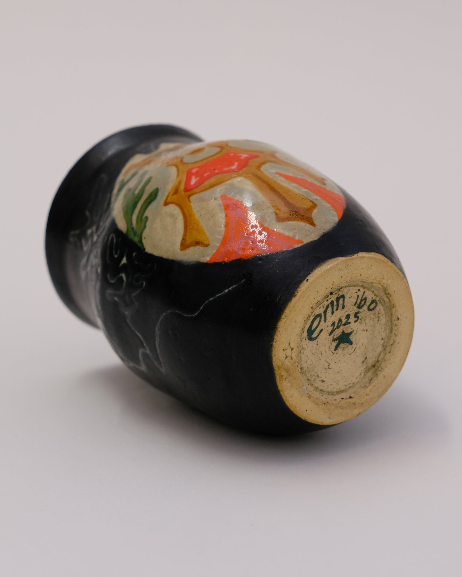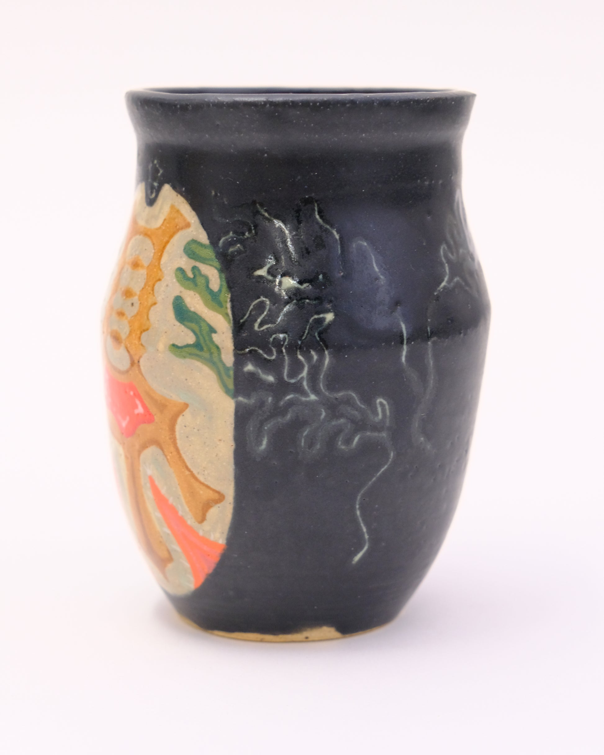 Hand thrown, painted, and glazed stoneware vase. Hand wash only.