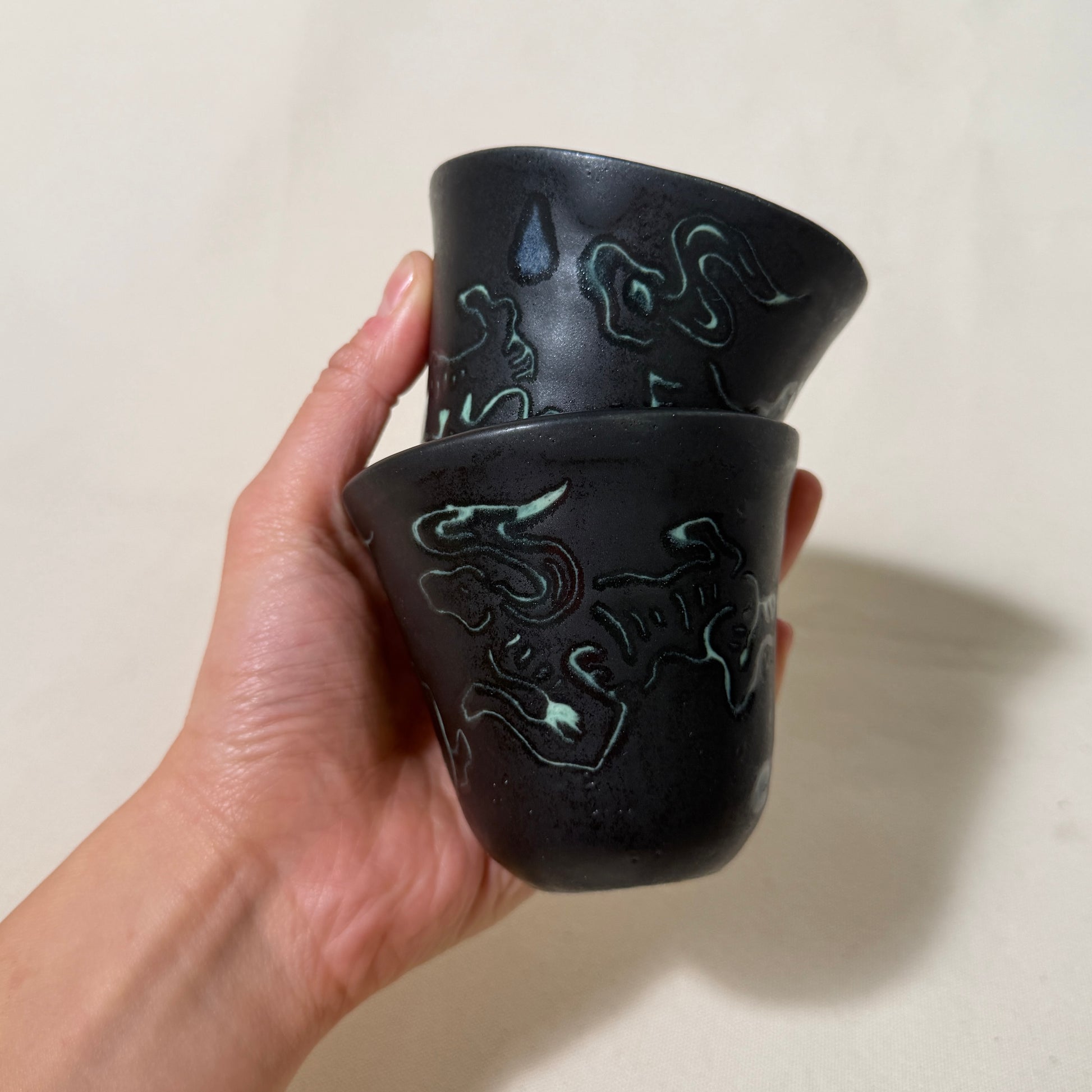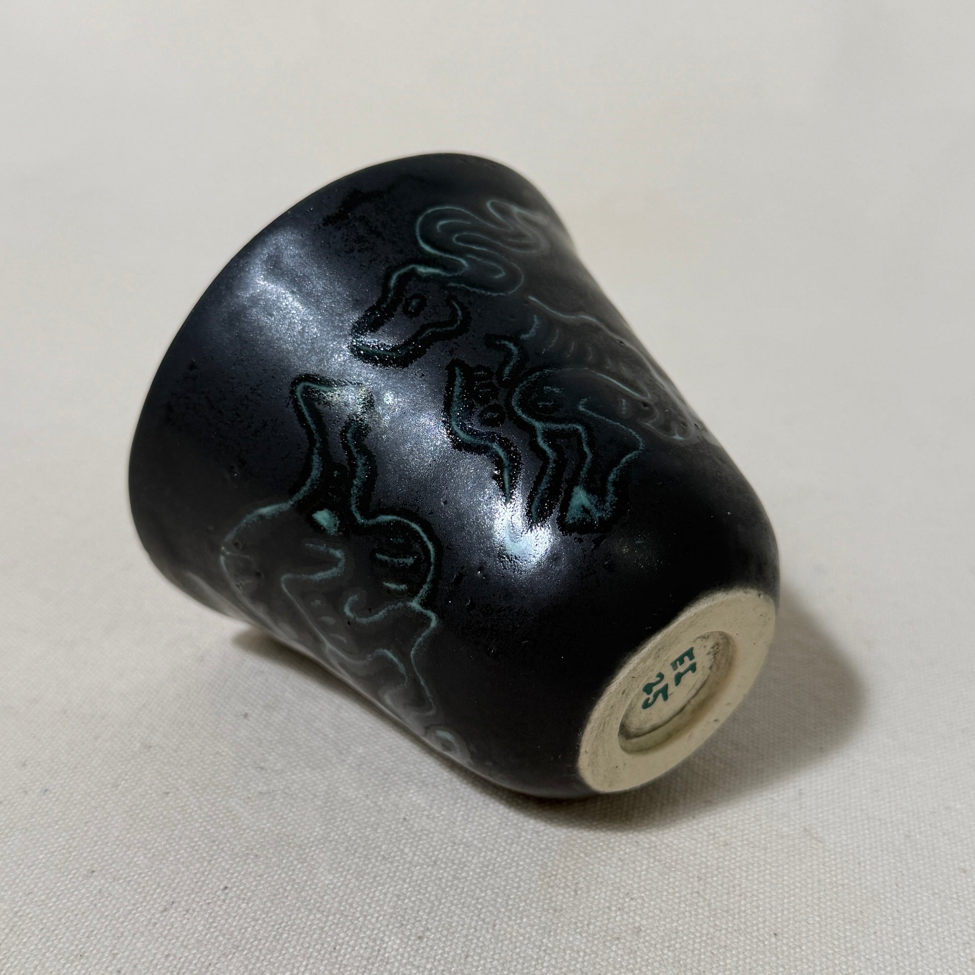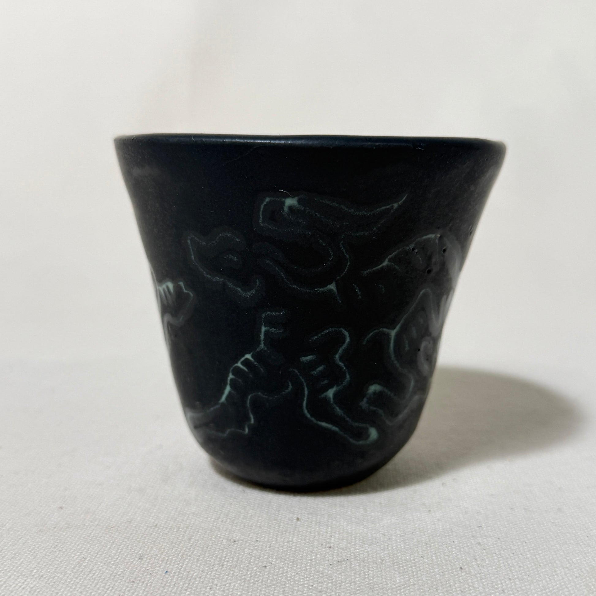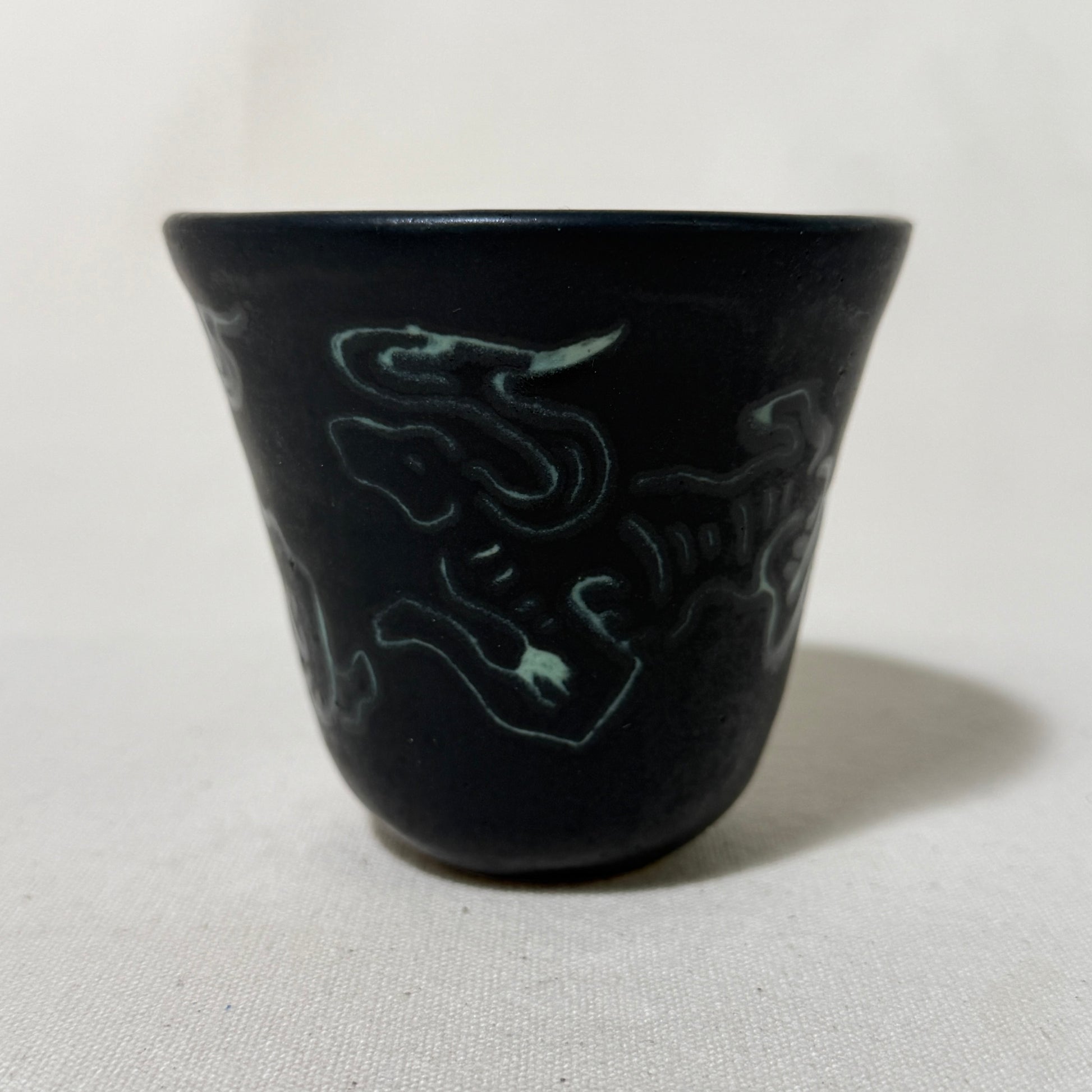 Hand thrown, painted, and glazed stoneware cup. Food safe, hand wash only.