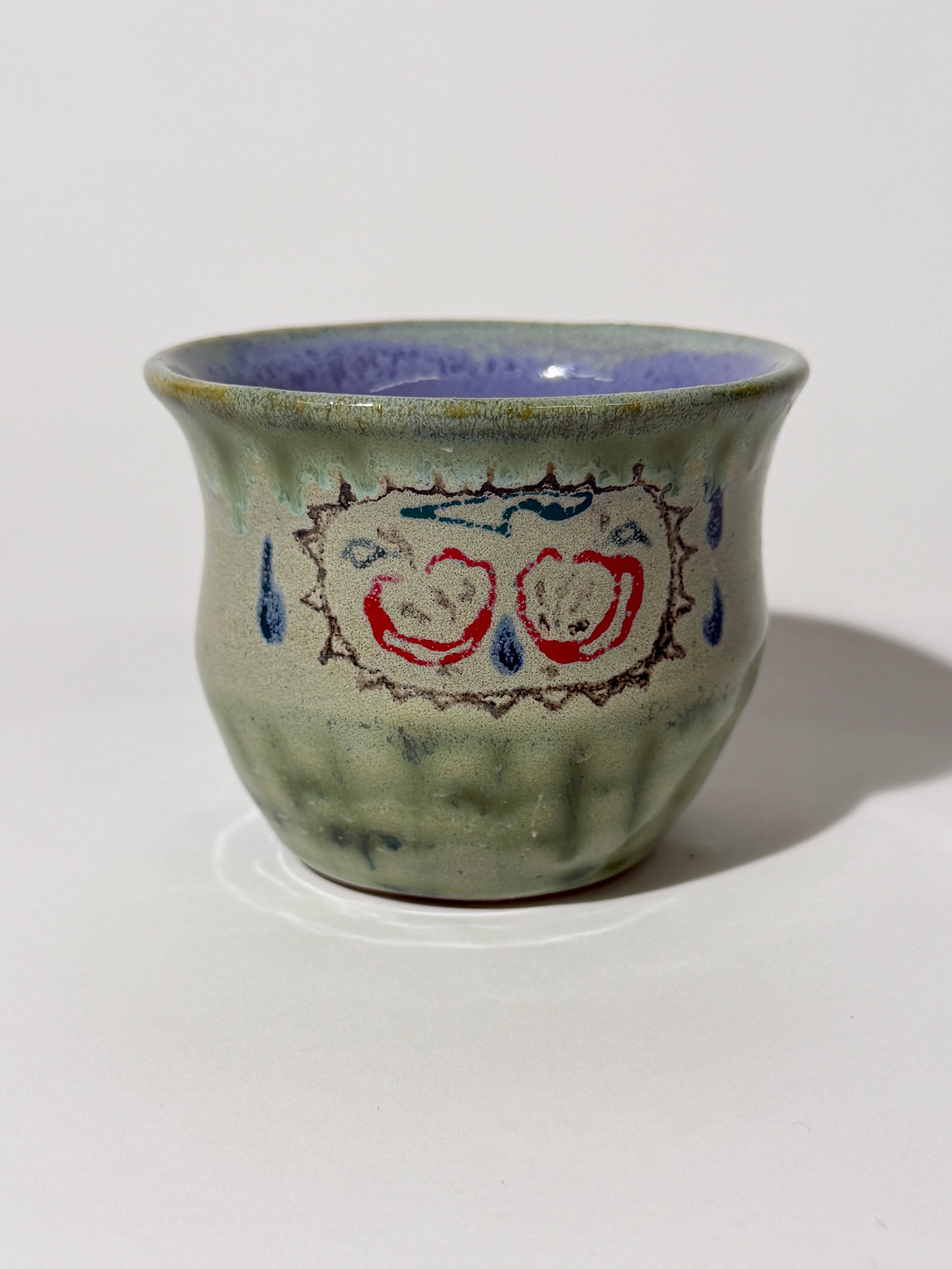 Hand thrown, painted, and glazed stoneware cup. Food safe, hand wash only.